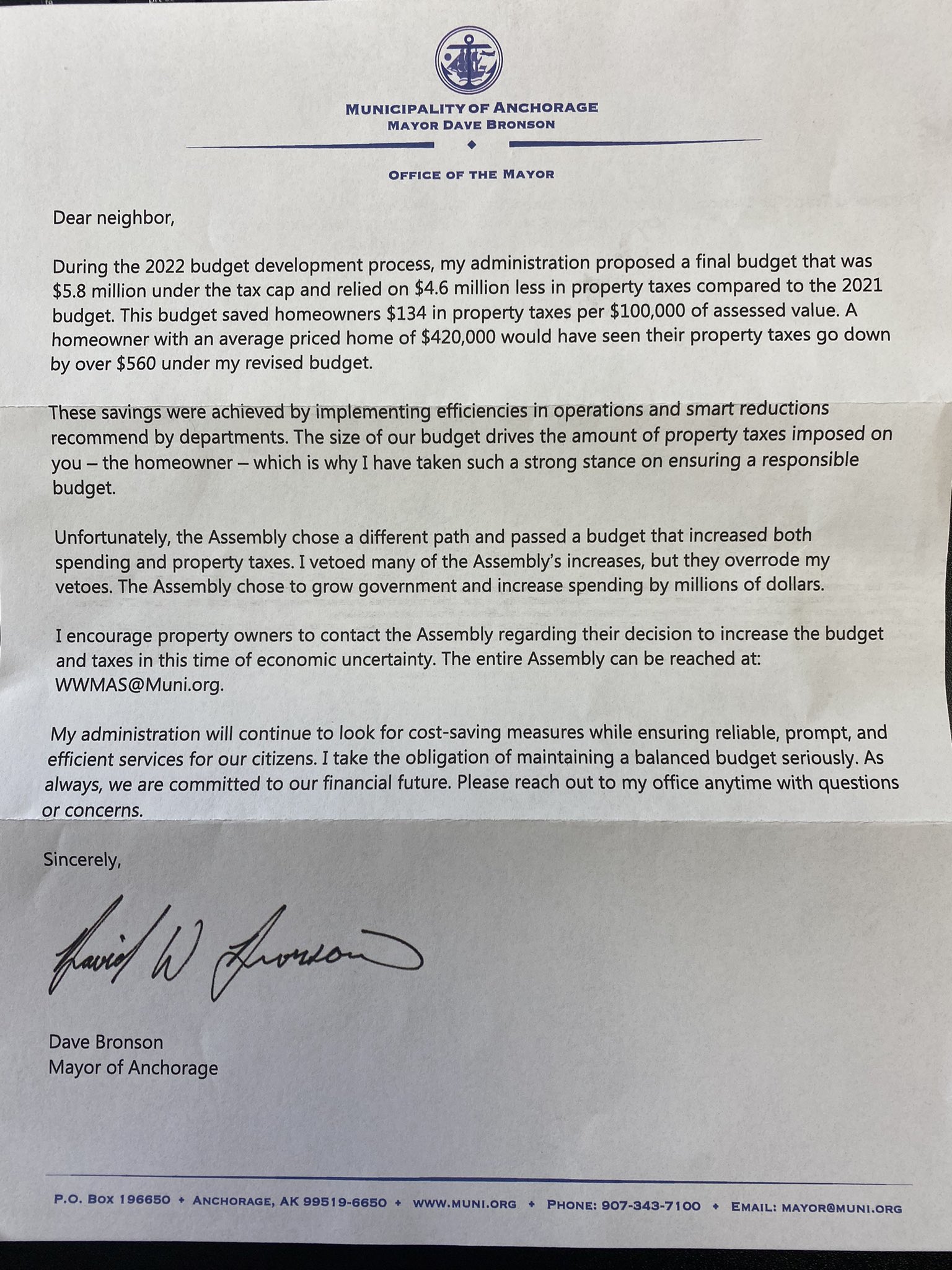 The Alaska Landmine On Twitter Filing This One In The Very Loose Category Mayor Bronson Included This Letter With All The Property Tax Bills The Letter Blames The Assembly For Higher Property Taxes
